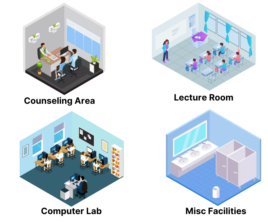 Counselling Area-Lecture Room-Computer Laboratory (Compulsory)