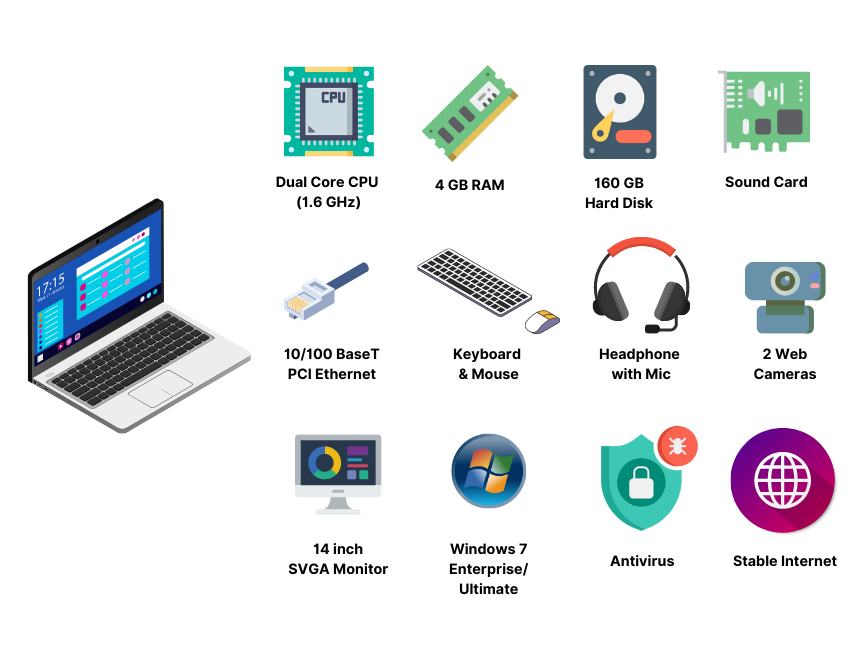 Quantity required per center (minimum): 10 Desktop/Laptops