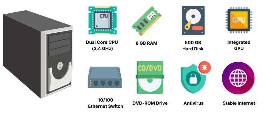 - 256 Kbps Broadband Connection (Server and all Desktops should be able to connect to the Internet by using Internet Connection Sharing or Proxy Server)